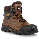 Chaussure de sécurité haute JALIROK adaptée aux travaux extérieurs sur sols accidentés grâce à sa semelle tout-terrain et son cuir hydrofuge.