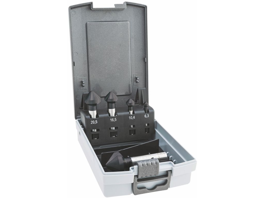 Coffret - Fraise conique à ébavurer HSS-Co, division inégale, DIN 335 C, 90°, AL