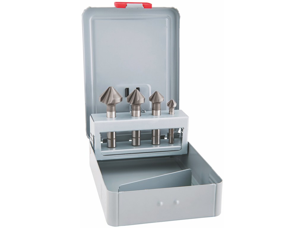 Documentation Coffret - Fraise conique à ébavurer HSS-Co, tige à 3 pans, division inégale, DIN