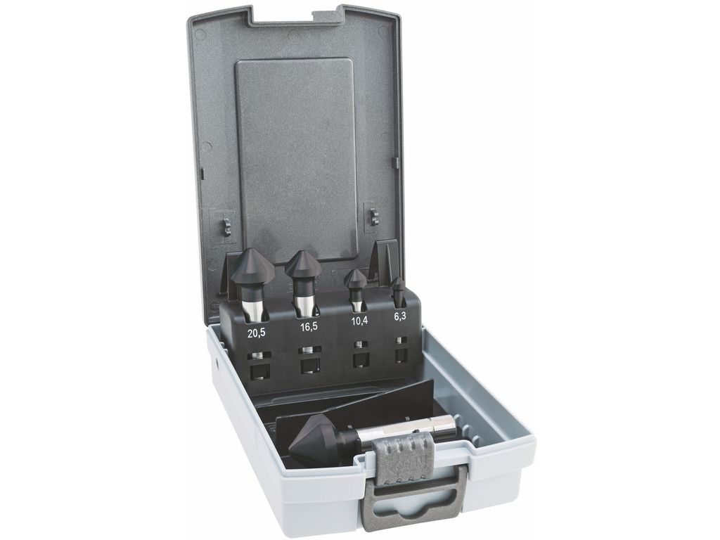 Coffret - Fraise conique à ébavurer HSS-Co, tige à 3 pans, division inégale, DIN