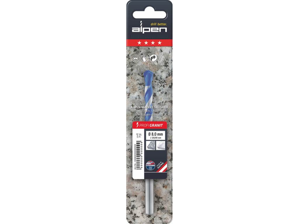 Foret spécial pour le perçage rotatif et à percussion du granit et du marbre. Grâce à la géométrie spéciale du foret et à la plaquette en carbure, convient parfaitement au perçage de tous les types de granit, même les plus durs.