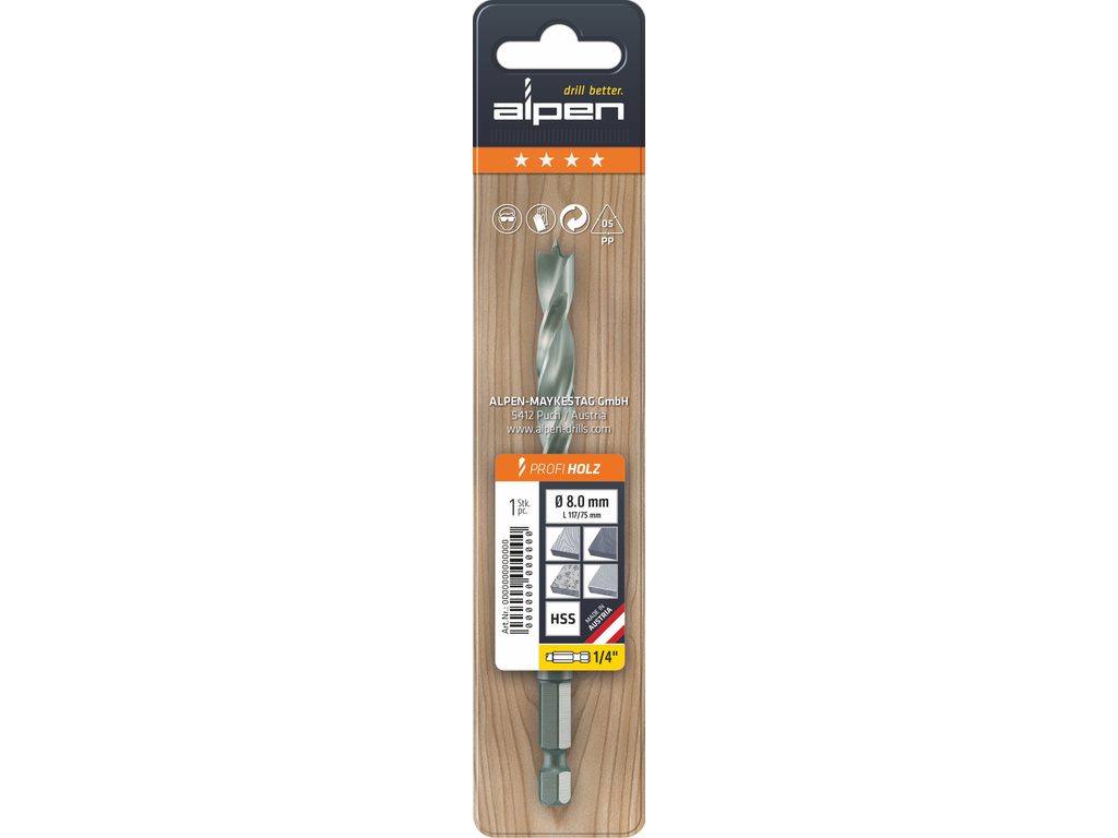 Documentation Foret hélicoïdal pour bois pour machines HSS avec emmanchement hexagonal 1/4" -