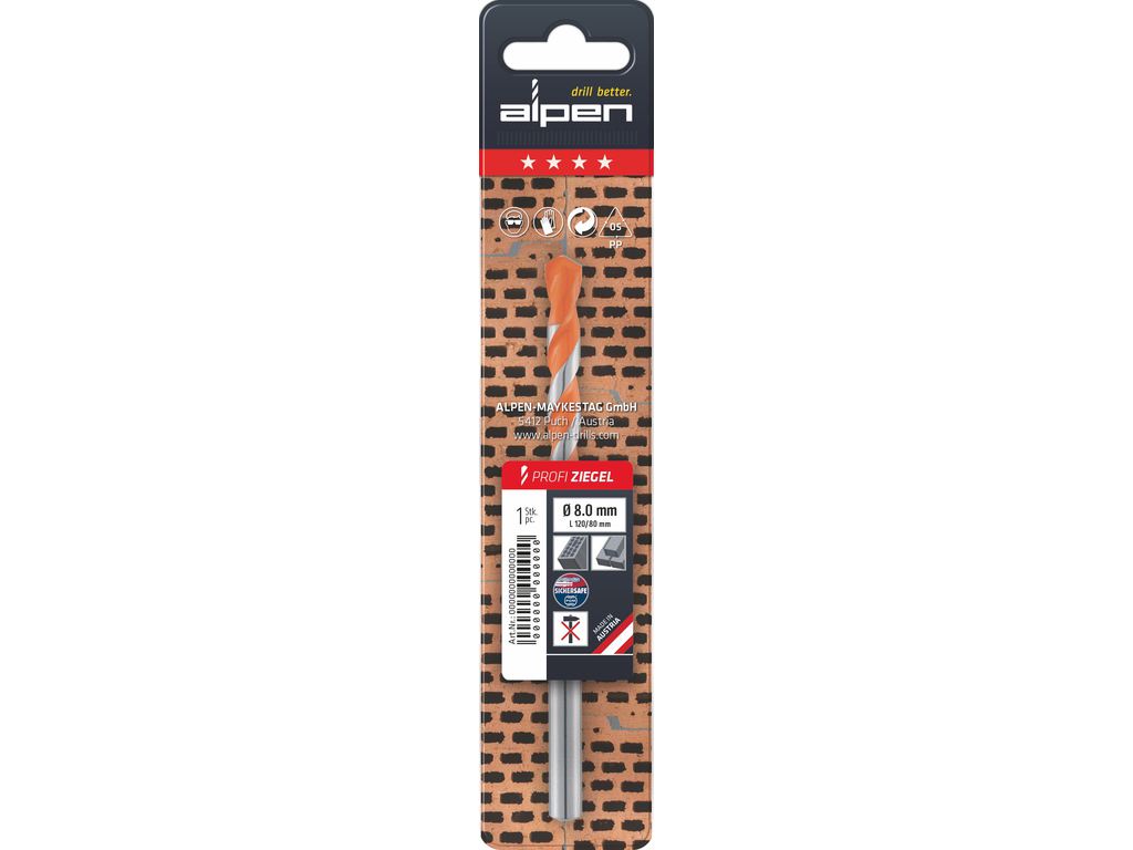 Foret spécial pour le perçage rotatif sans rupture des briques creuses. La géométrie unique des tranchants empêche l'éclatement des cavités et garantit ainsi une bonne tenue des chevilles.