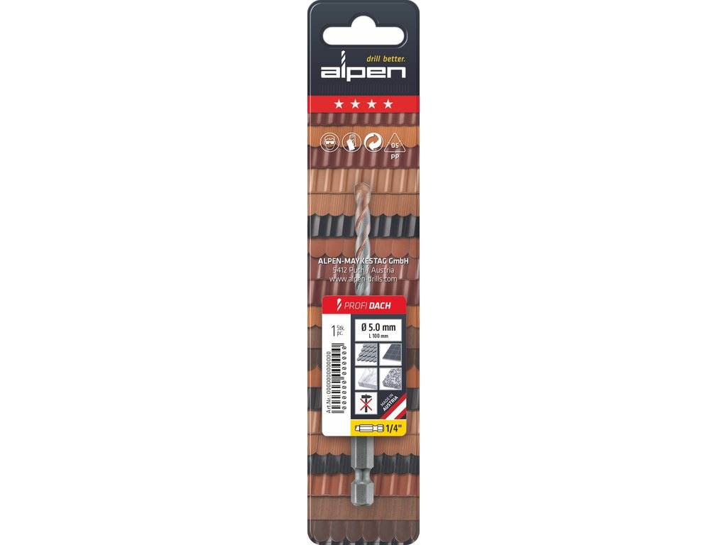 Foret pour tuiles de toiture en carbure avec emmanchement hexagonal 1/4" - Profi
