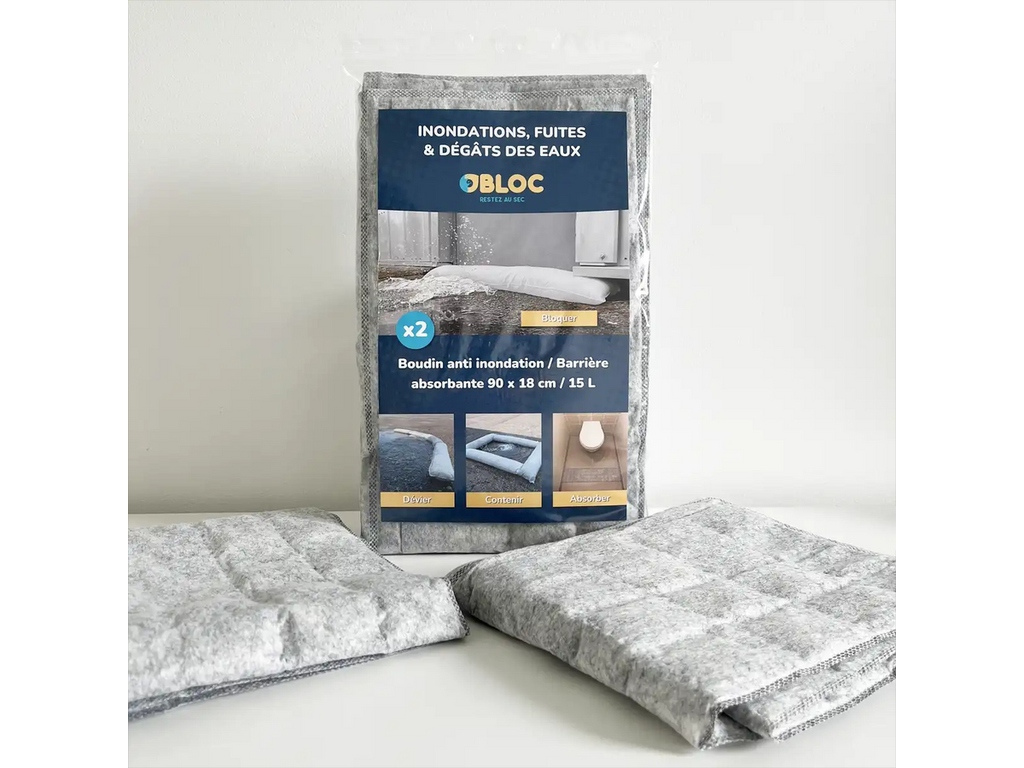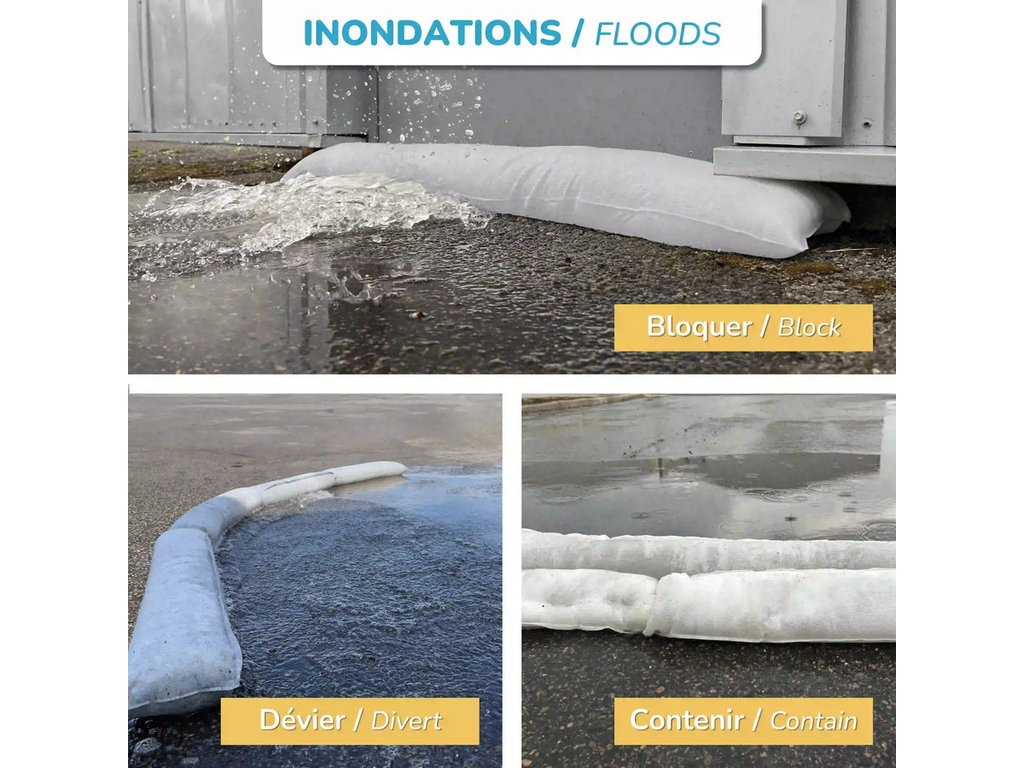 Les boudins anti-inondation 90 cm OBLOC® permettent dabsorber, de bloquer et de dévier les eaux et les boues lors dune inondation.