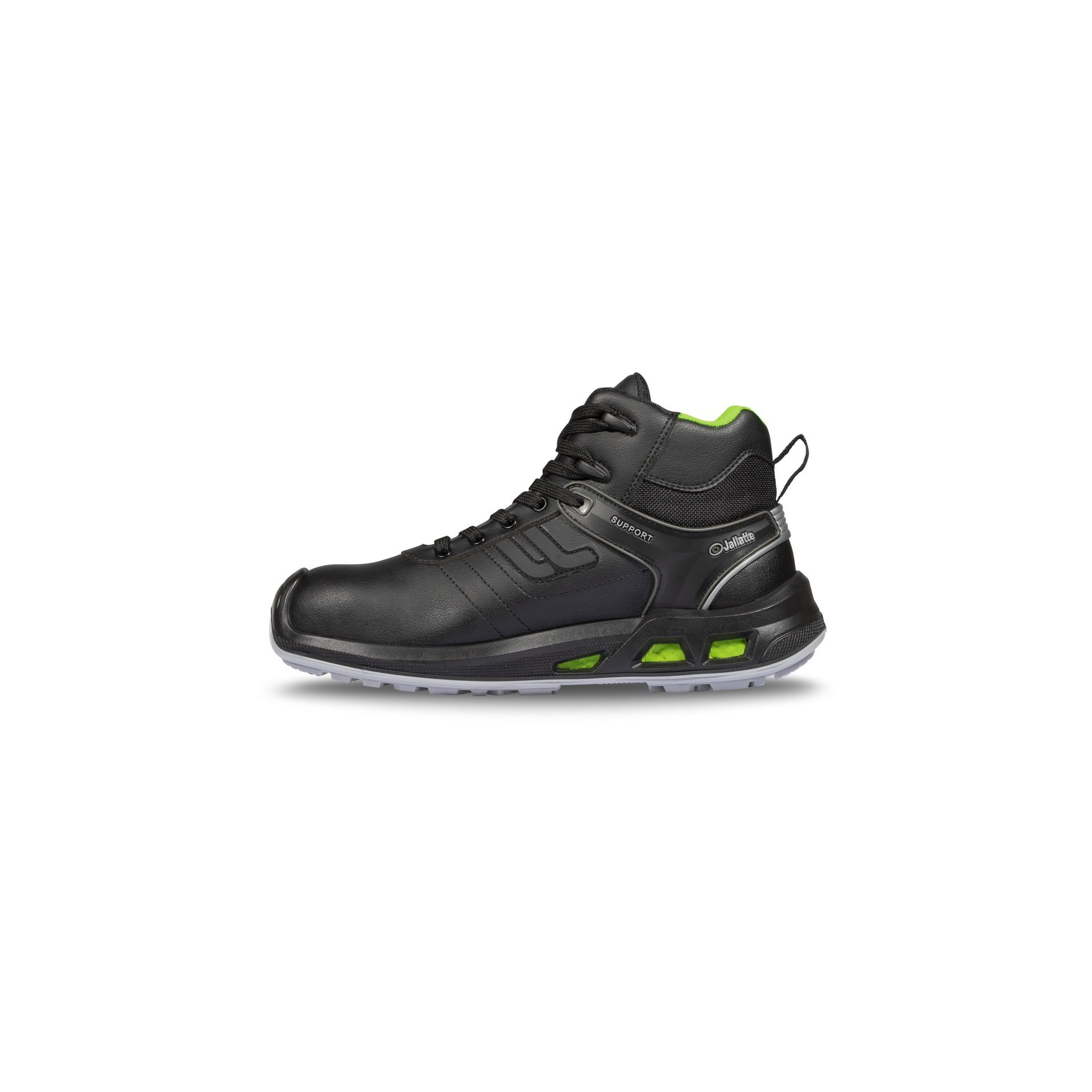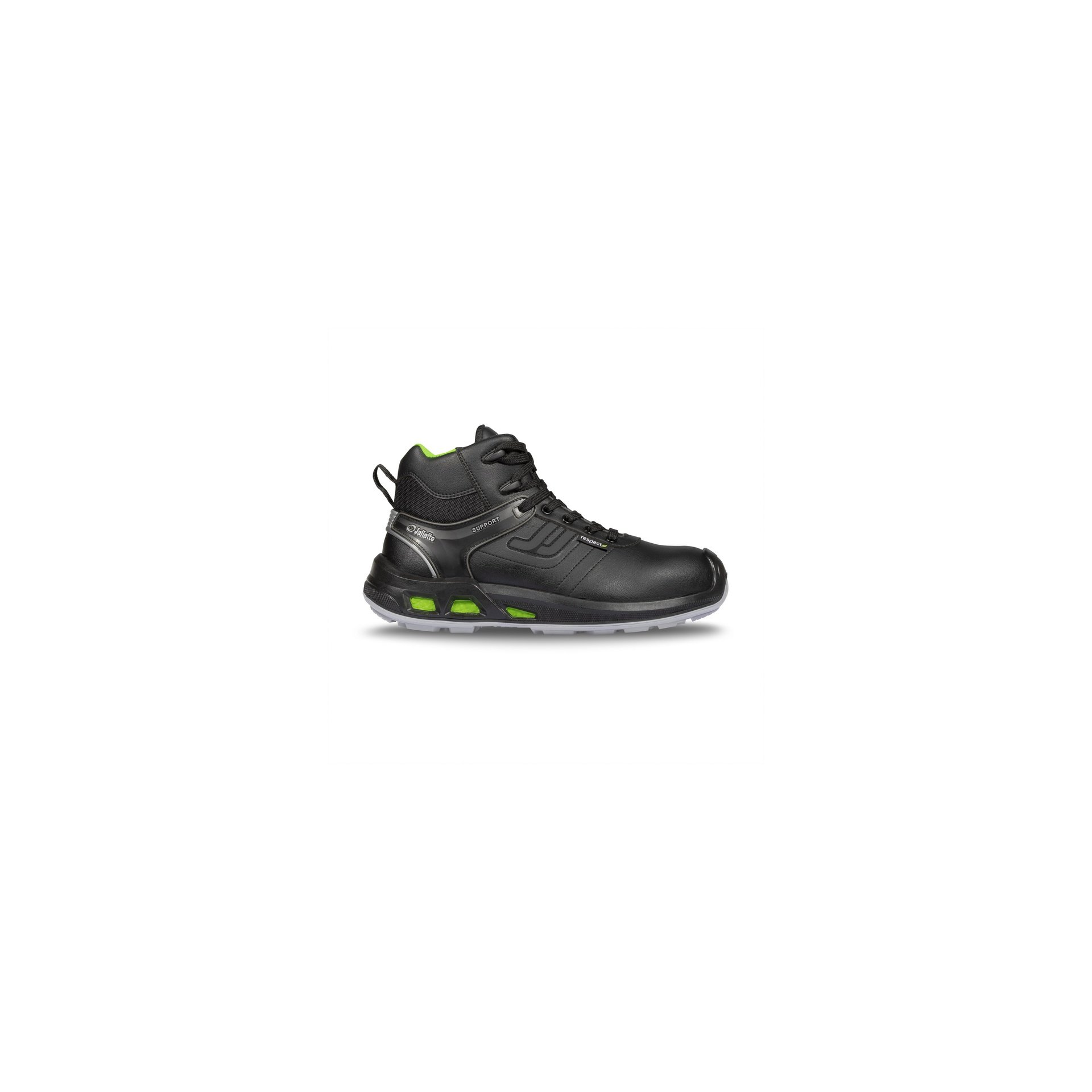 Chaussure de sécurité montante de type urban sport conçue avec une technologie anti-fatigue, coloris noir.