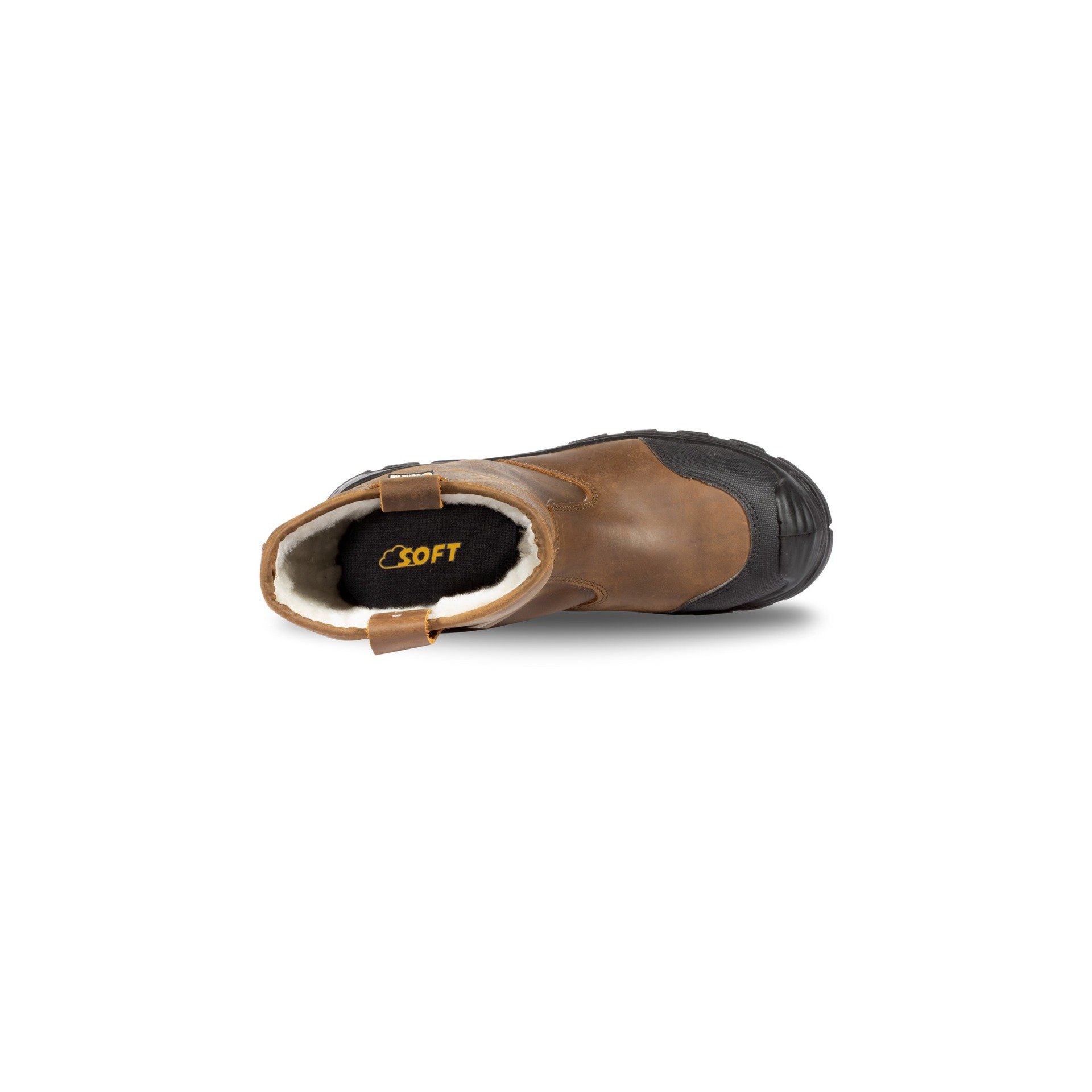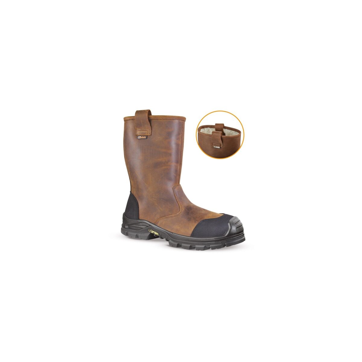 Botte de sécurité JALBOX adaptée aux travaux extérieurs sur sols accidentés grâce à sa semelle tout terrain et son cuir hydrofuge.