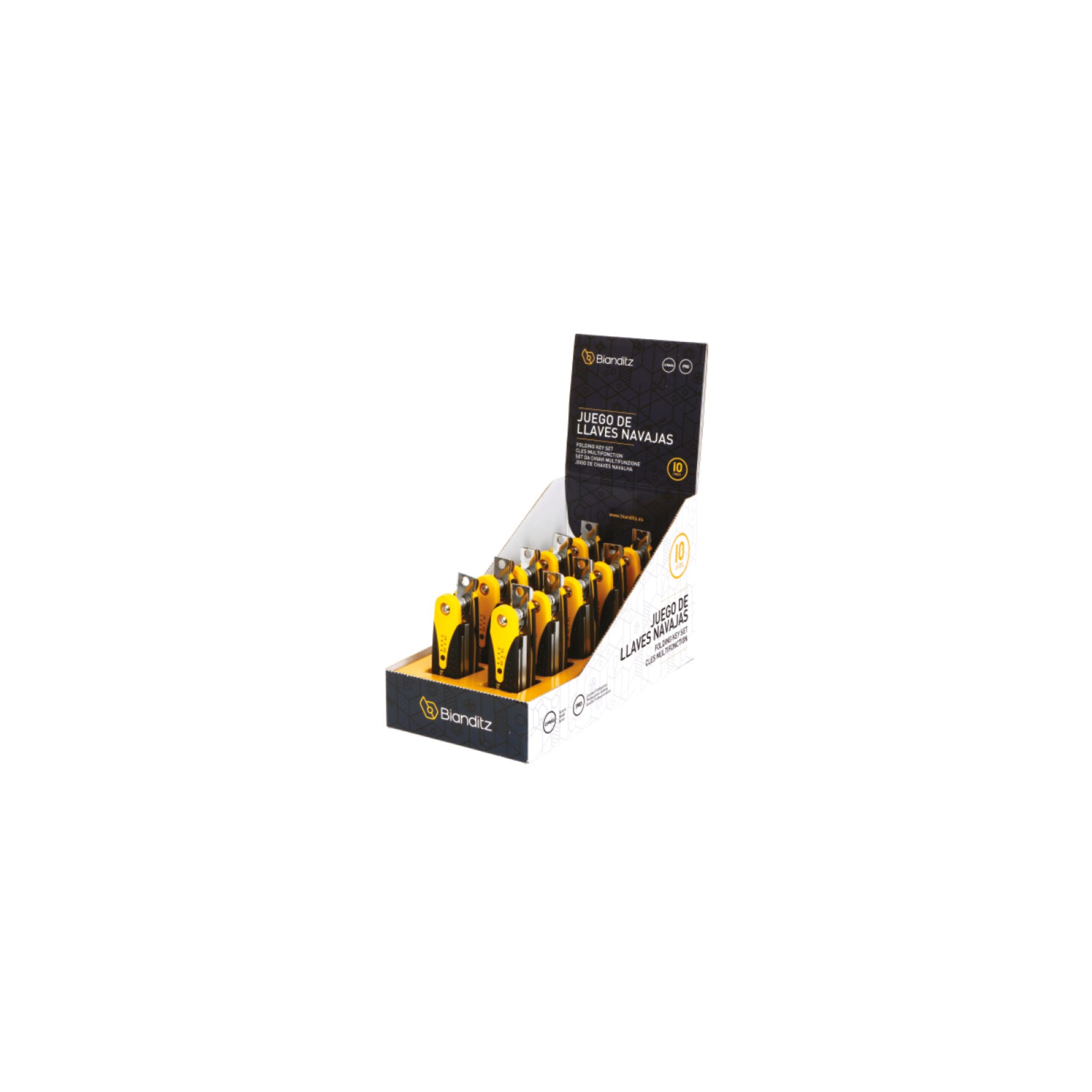Clef pliante du fabricant Biandtiz avec 7 clefs hexagonales 1,5-2-2,5-3-4-5-6 mm. Commande par multiple de 10 pièces livraison en carton présentoir.