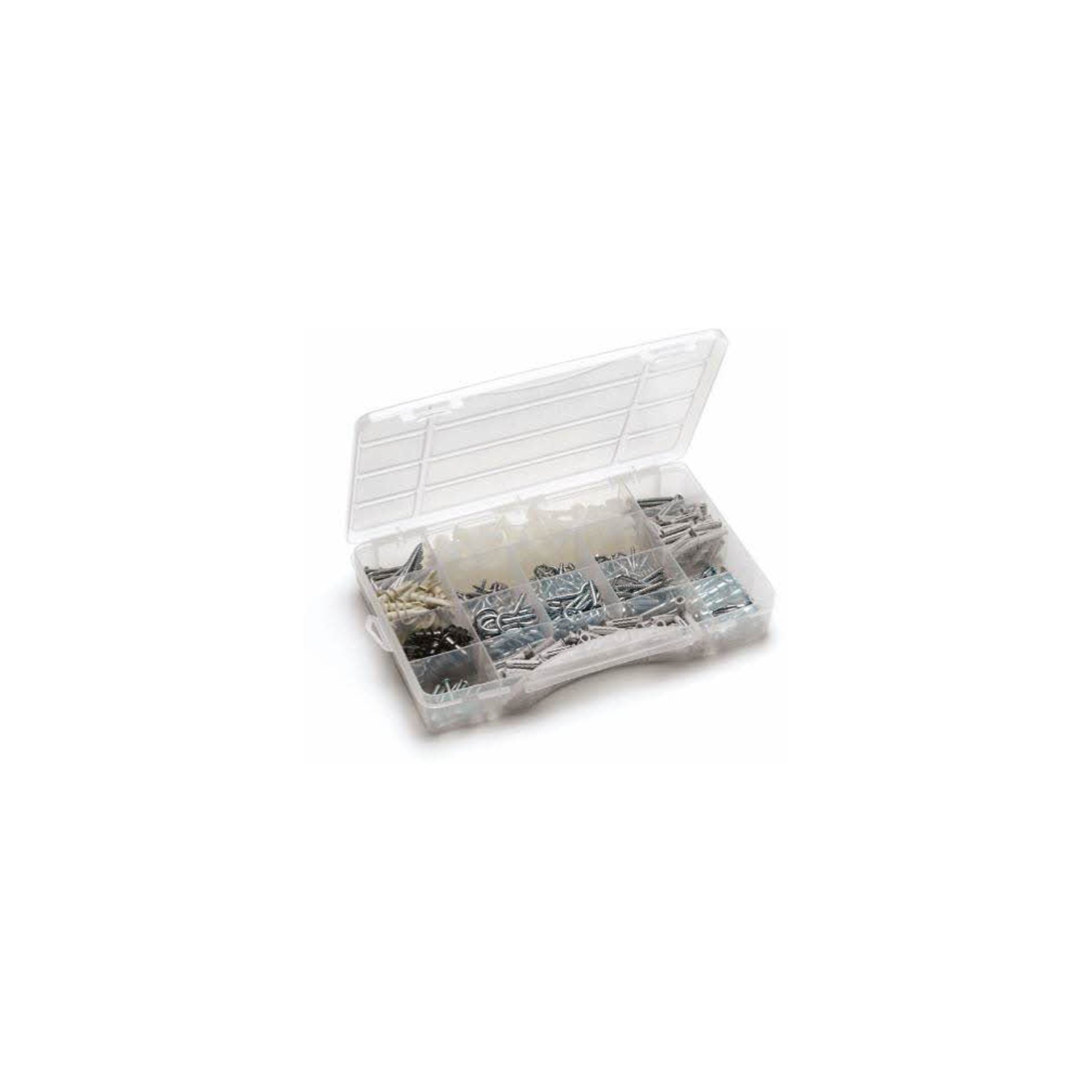 Coffret plaque de plâtre 03 Mallette transparente multi-produits comprenant 455 pièces : TN4S06 (75 unités), TN4S05 (75 unités), ALRO17040 (30 unités), ALHA17040 (30 unités), ALHC17040 (30 unités), ANCLA40 (25 unités), ALRO20070 (25 unités), ALHA20070 (25 unités), ALHC20070 (25 unités), TPPOZ40050 (25 unités), T8142032 (20 unités), TAPLANY (20 unités), TAPLAME (20 unités), ALRO19070 (20 unités), INCO438 (5 unités), INCO537 (5 unités). Utilisation recommandée sur: béton, béton creuse, béton cellulaire, brique pleine, brique creuse, pierre, bois noble, placo-prâtre… entre autres. Recommandé pour l’installation de collier, collier support, collier tubes, collier lampe, climatisation, Cheville plafond, fixation clôture, fixation espaliers… entre autres.