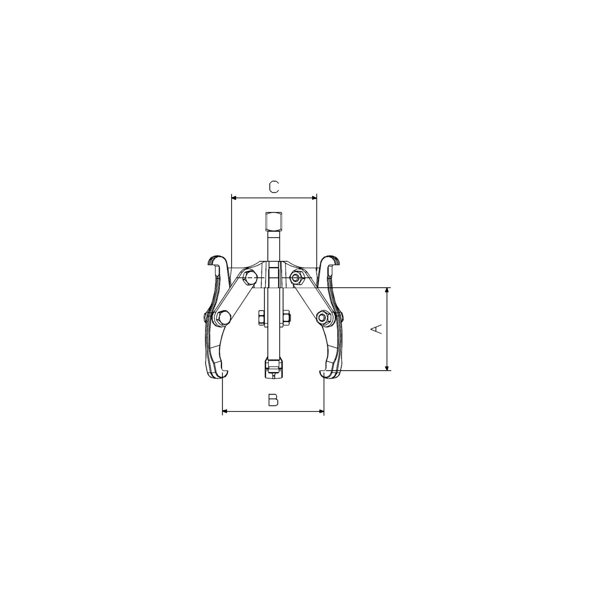 Extracteur à 3 griffes normales réversibles : griffe normale + griffe fine avec fente pour tirer du vis Possibilité de montage avec 2 griffes griffes forgées griffes normales (1 trou) Les extracteurs à griffes normales servent à retirer les pièces proches de l’extrémité de l’arbre La griffe a un canal à la pointe pour tirer les vis Broche à tête carrée pour une meilleure prise de la clé Pieds réversibles avec section différente