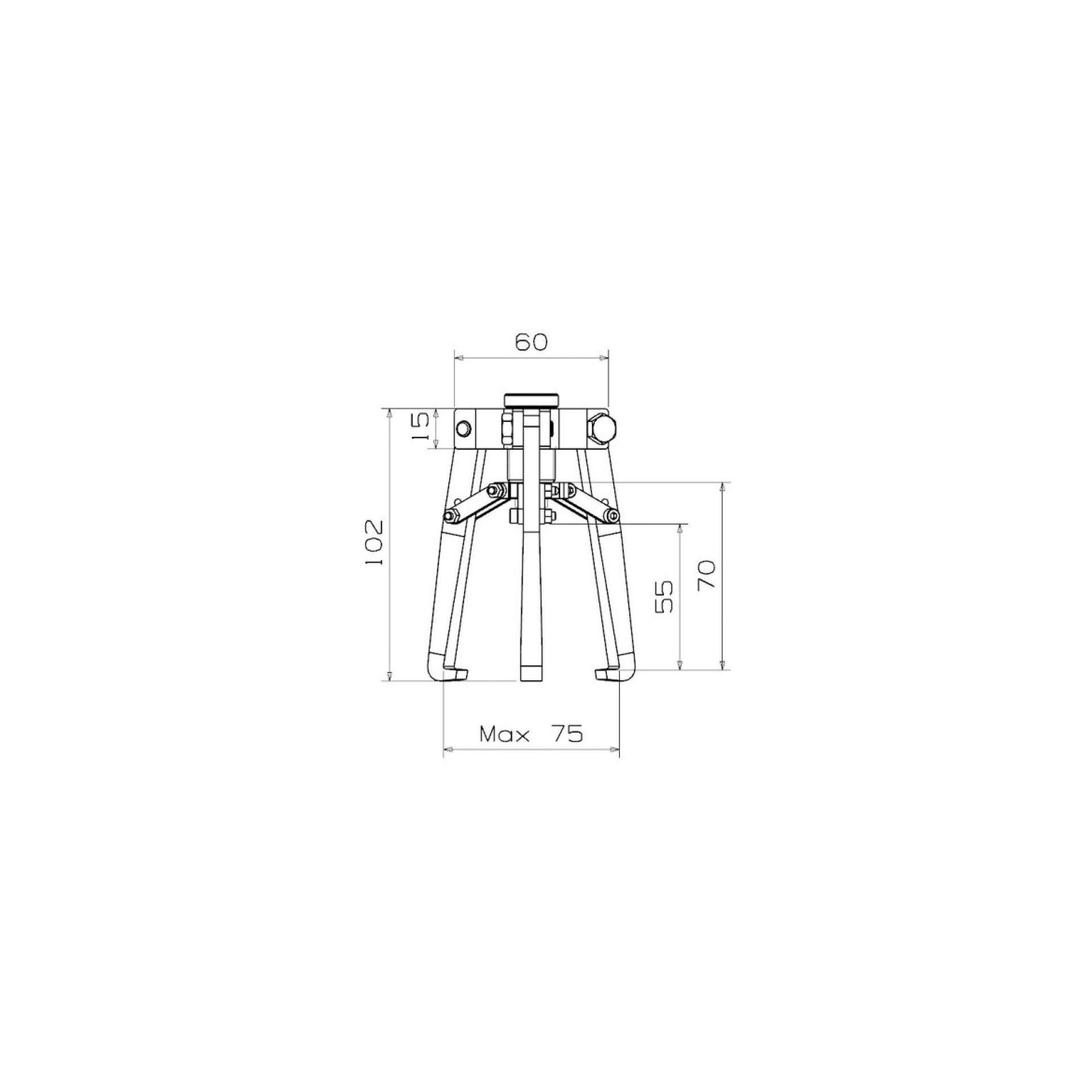470205 est la griffe pour extraction à prise extérieure jusqu’à un diamètre de 75 mm et pour extraction à prise intérieure d’un diamètre de 60 à 100 mm.