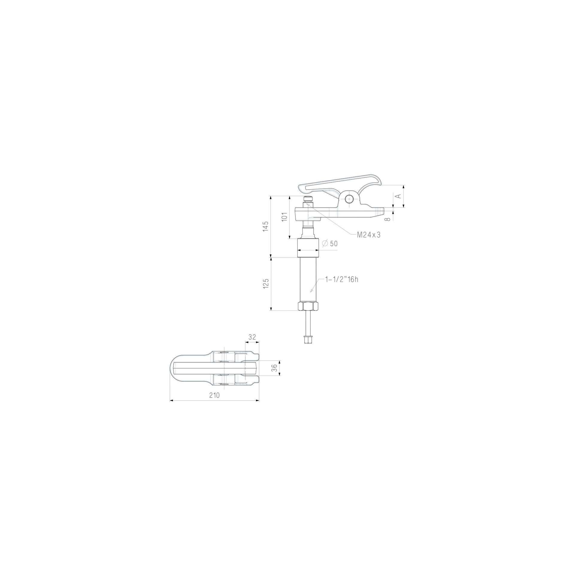 Extracteur de rotule à levier hydraulique. Corps et levier forgés en acier 40CrMo4 et trempés. Goupille en acier trempé 40CrMo4.