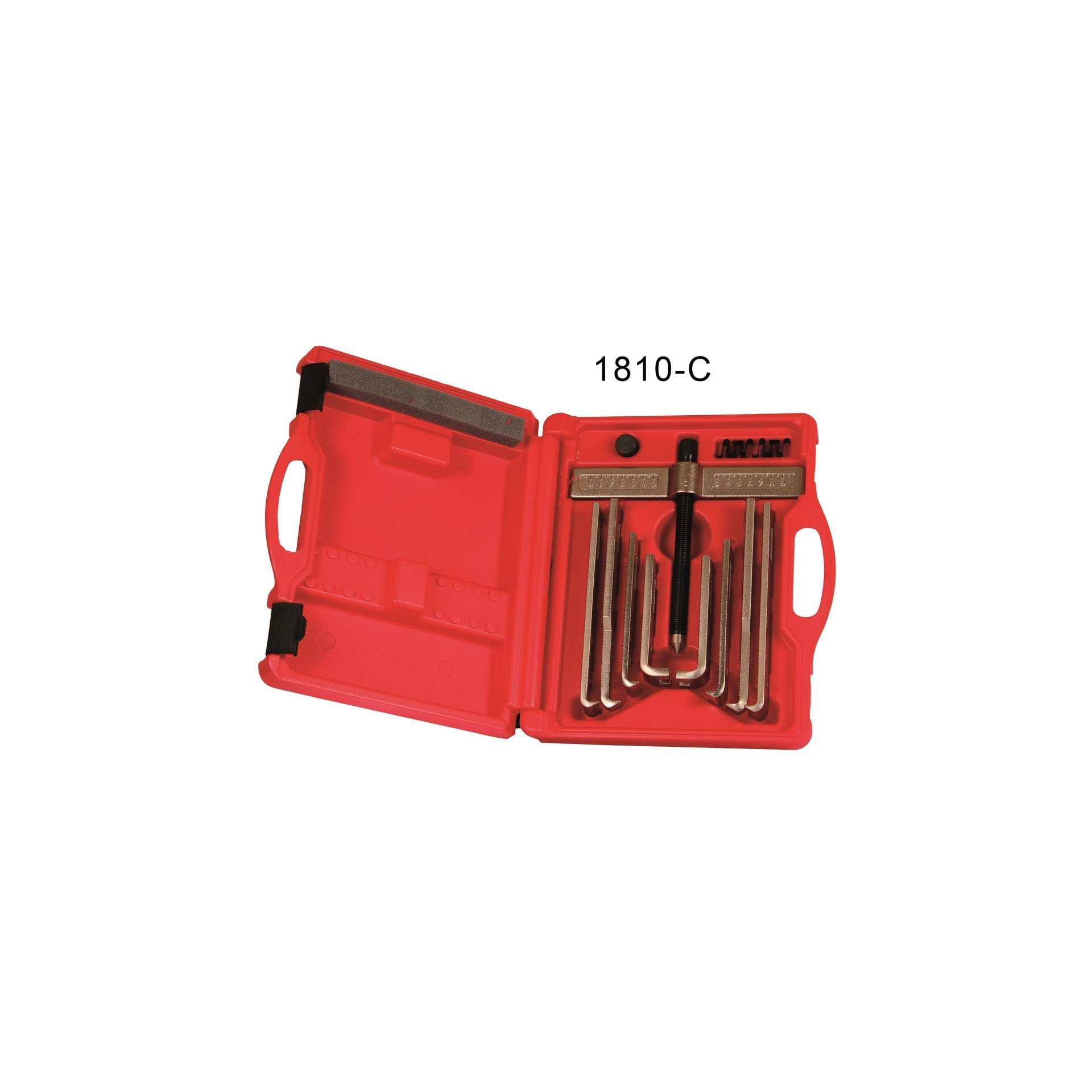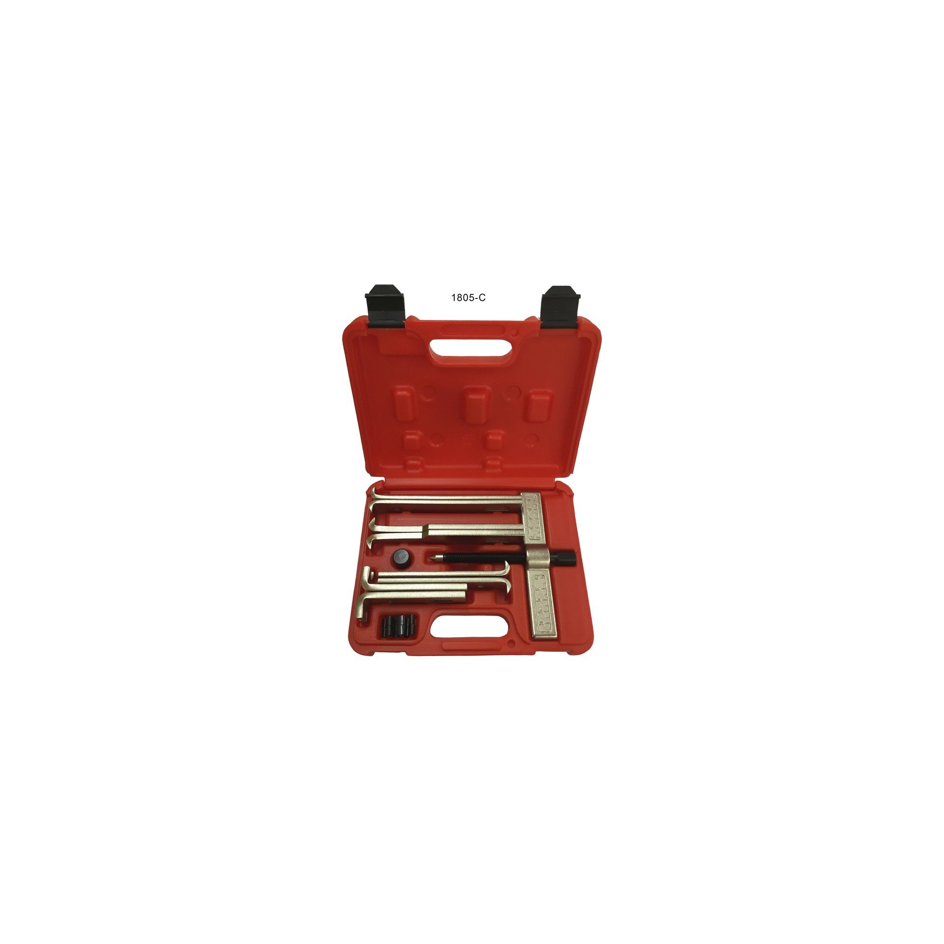 Extracteur multiple à 2 griffes réversibles pour extérieur et intérieur dans une valise Corps et griffes forgés vis avec pointe rotative à 90 degrés un protecteur du point est compris Les griffes 32 ont une fente pour pouvoir tirer des vis Deux griffes peuvent être joints pour obtenir une plus grande hauteur Quatre jeux de jambes différents Placement rapide et changement de jambes