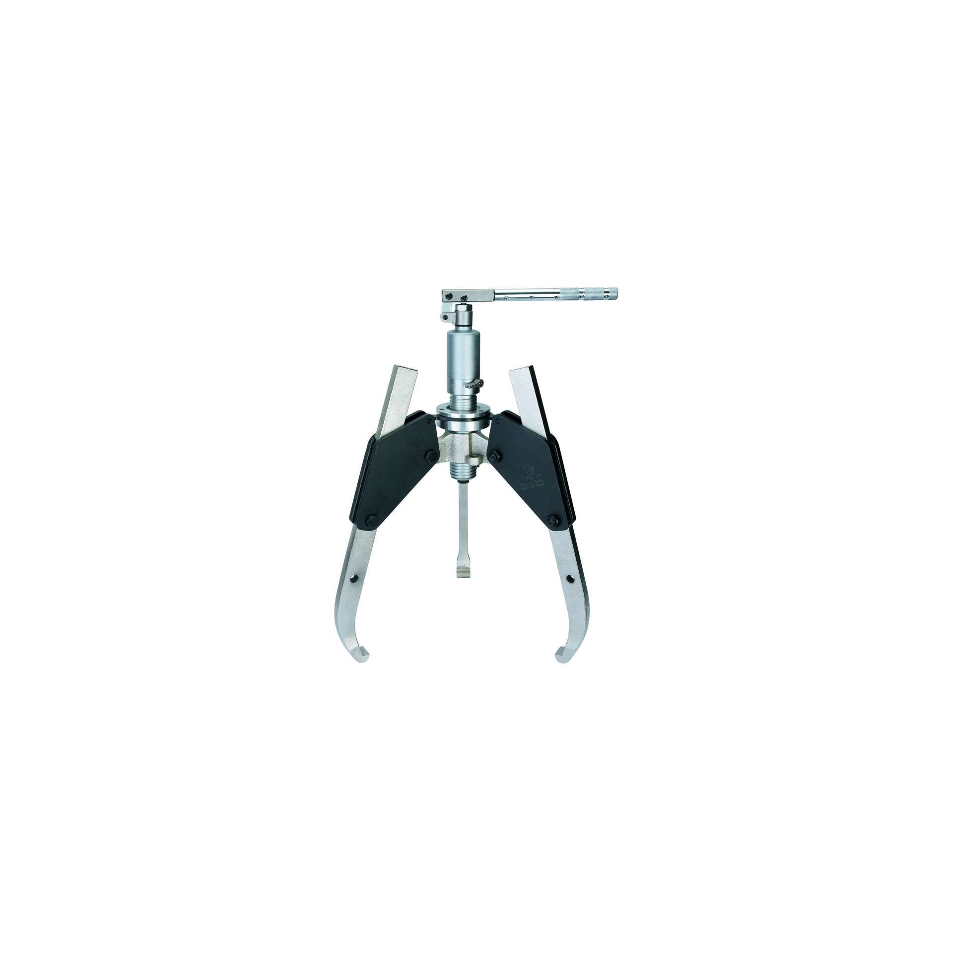 Extracteur hydraulique à centrage automatique avec pompe et vérin intégrés pour l’extérieur. Jambes forgées. Toutes les jambes bougent en même temps, pour obtenir une adhérence optimale lors de l’extraction. Il améliore le placement de l’extracteur, même si la pièce à extraire est dans une position inconfortable. L’extracteur à centrage automatique est très sûr, car il ne peut pas être ouvert plus que ce que l’extracteur permet dans son utilisation correcte.