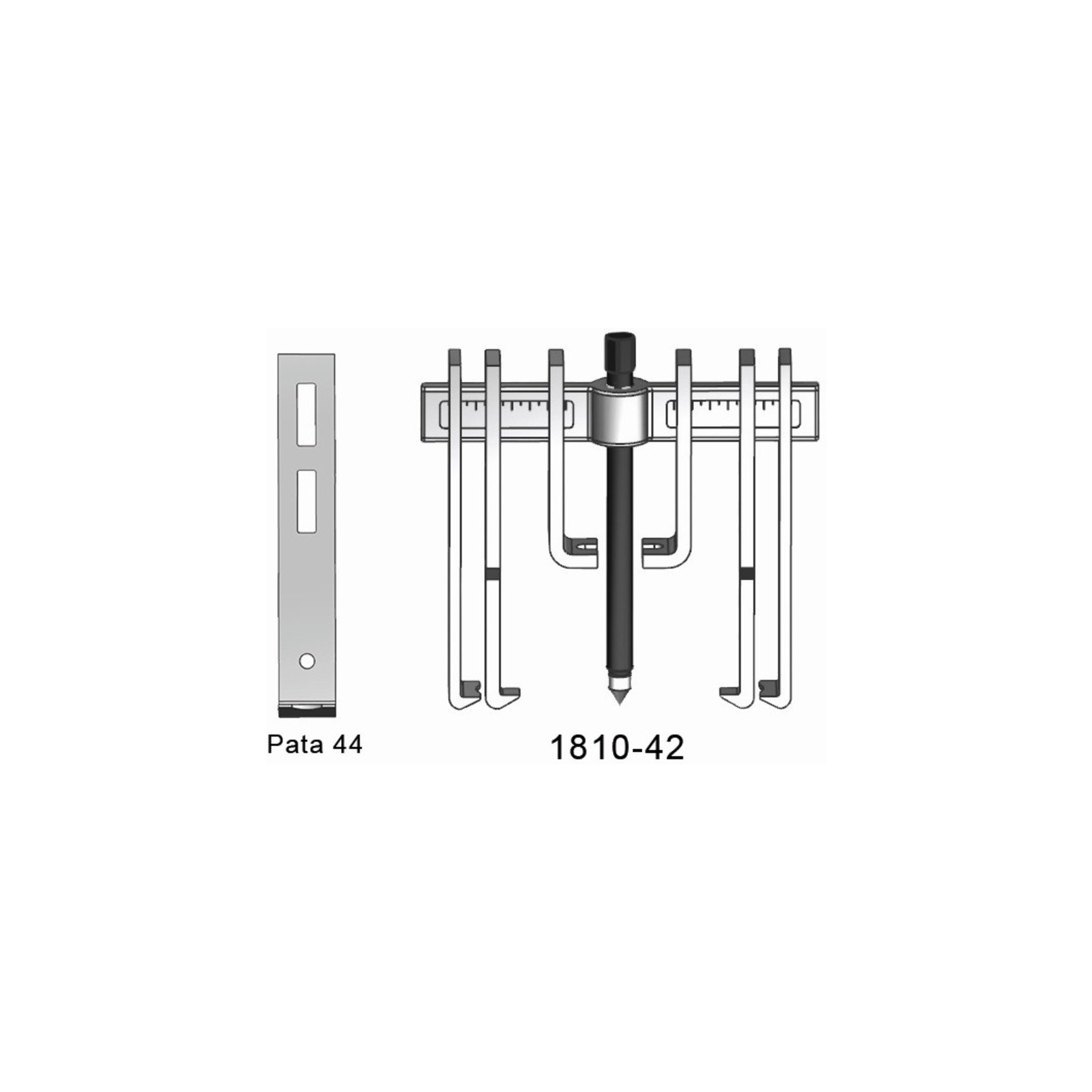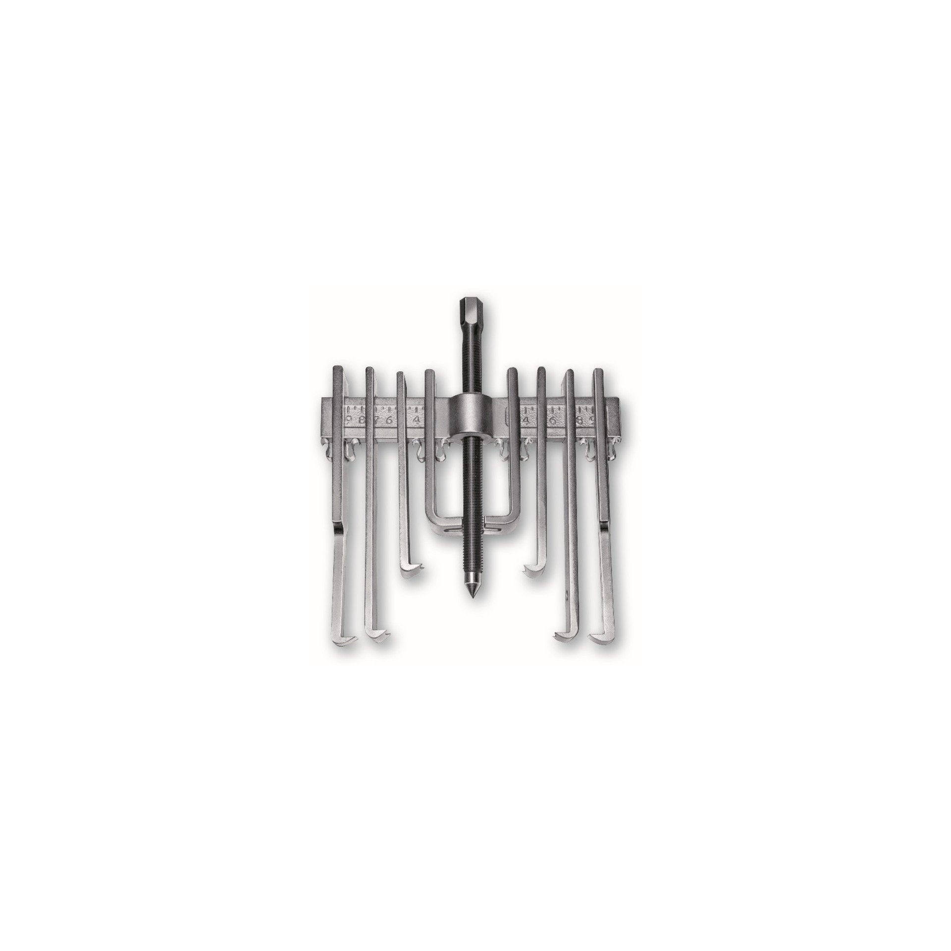 Extracteur multiple à 2 griffes réversibles pour extérieur et intérieur Corps et griffes forgés vis avec pointe rotative à 90 degrés Les griffes 32 ont une fente pour pouvoir tirer des vis Deux griffes peuvent être joints pour obtenir une plus grande hauteur Quatre jeux de jambes différents Placement rapide et changement de jambes