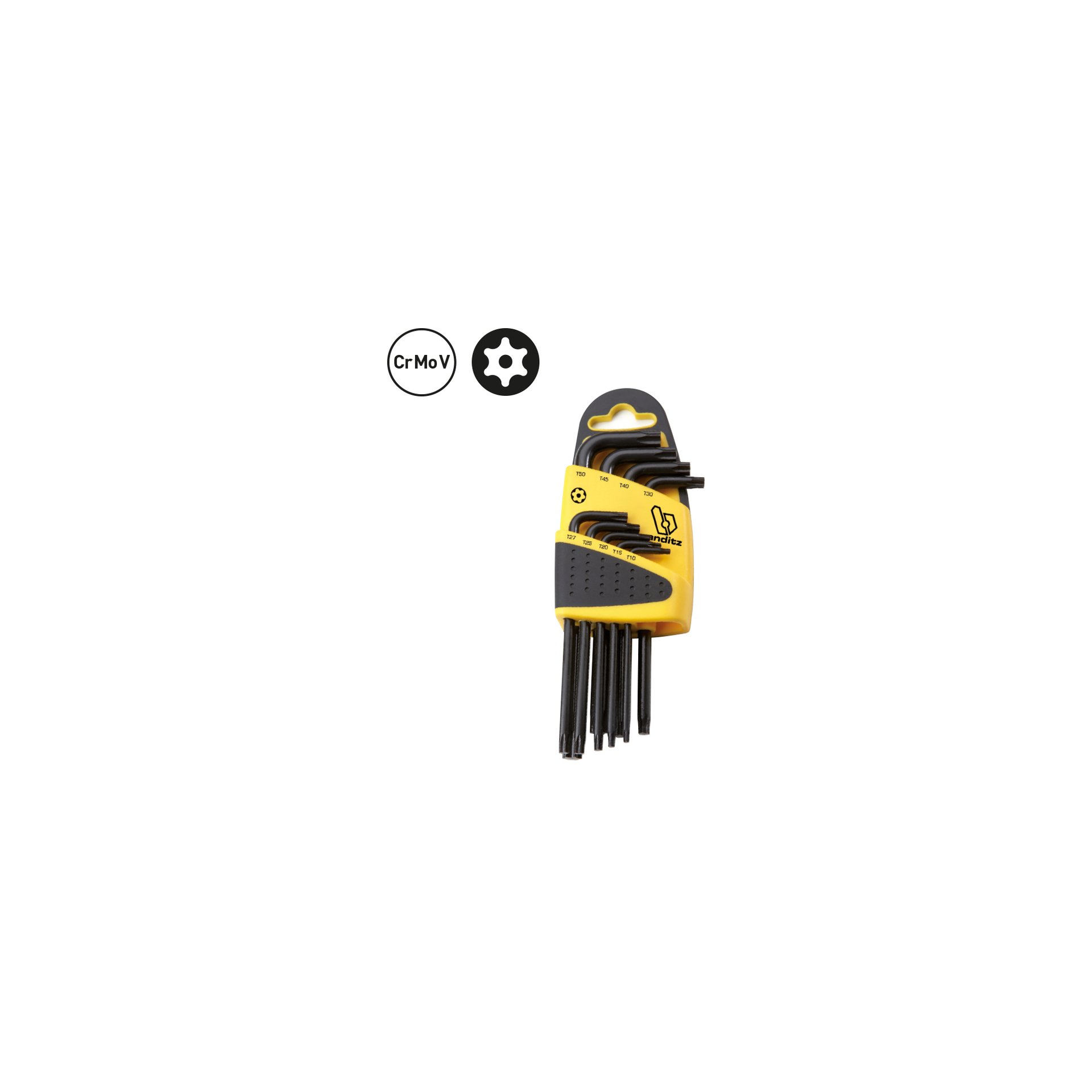 Jeu de 9 clés torx TAMPER acier chrome vanadium du fabricant Biandtiz.
