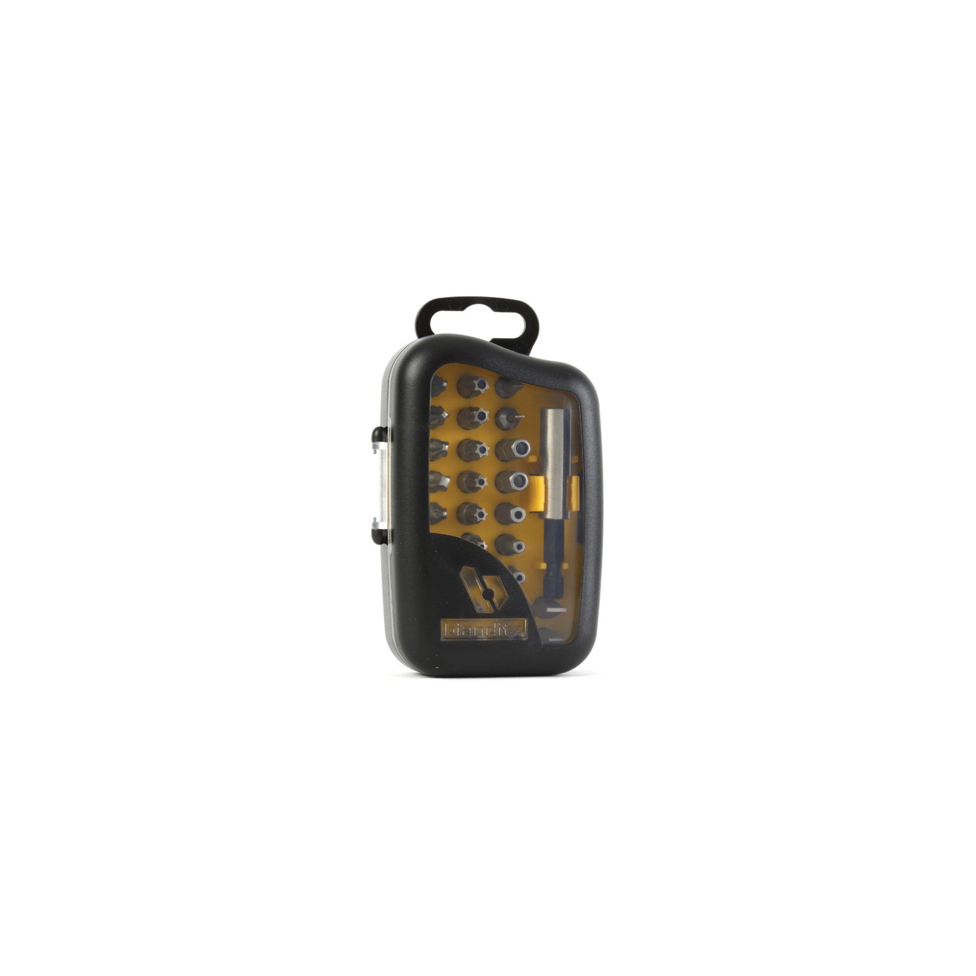 Jeu d’embouts de vissage de chez Biandtiz. Composé de Empreinte PH 1 – 2 – 3 , PZ 1 – 2 – 3 , TX TAMPER 10-15-20-25-27-30-40, HEX.TAMPER 3-4-5-6, PLAT 3-4-5,5-6,5 et d’un adaptateur 10X60 mm. Le produit est disponible à l’unité ou en carton présentoir de 10 jeux.