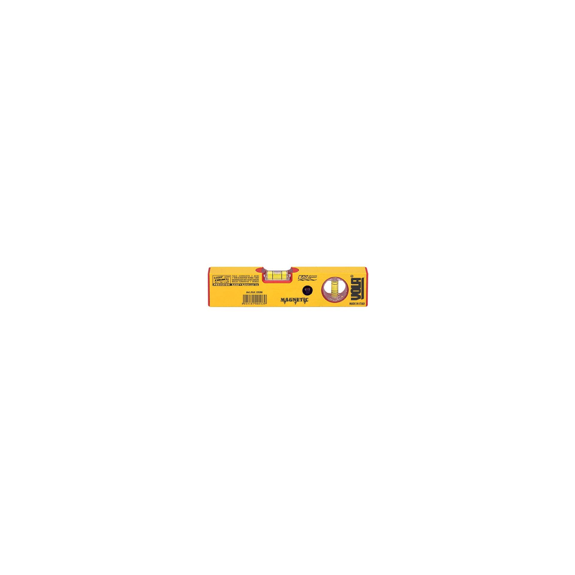 Niveau aluminium profilé magnétique jaune 2 fioles 220mm. Fiole centrale sans vis.