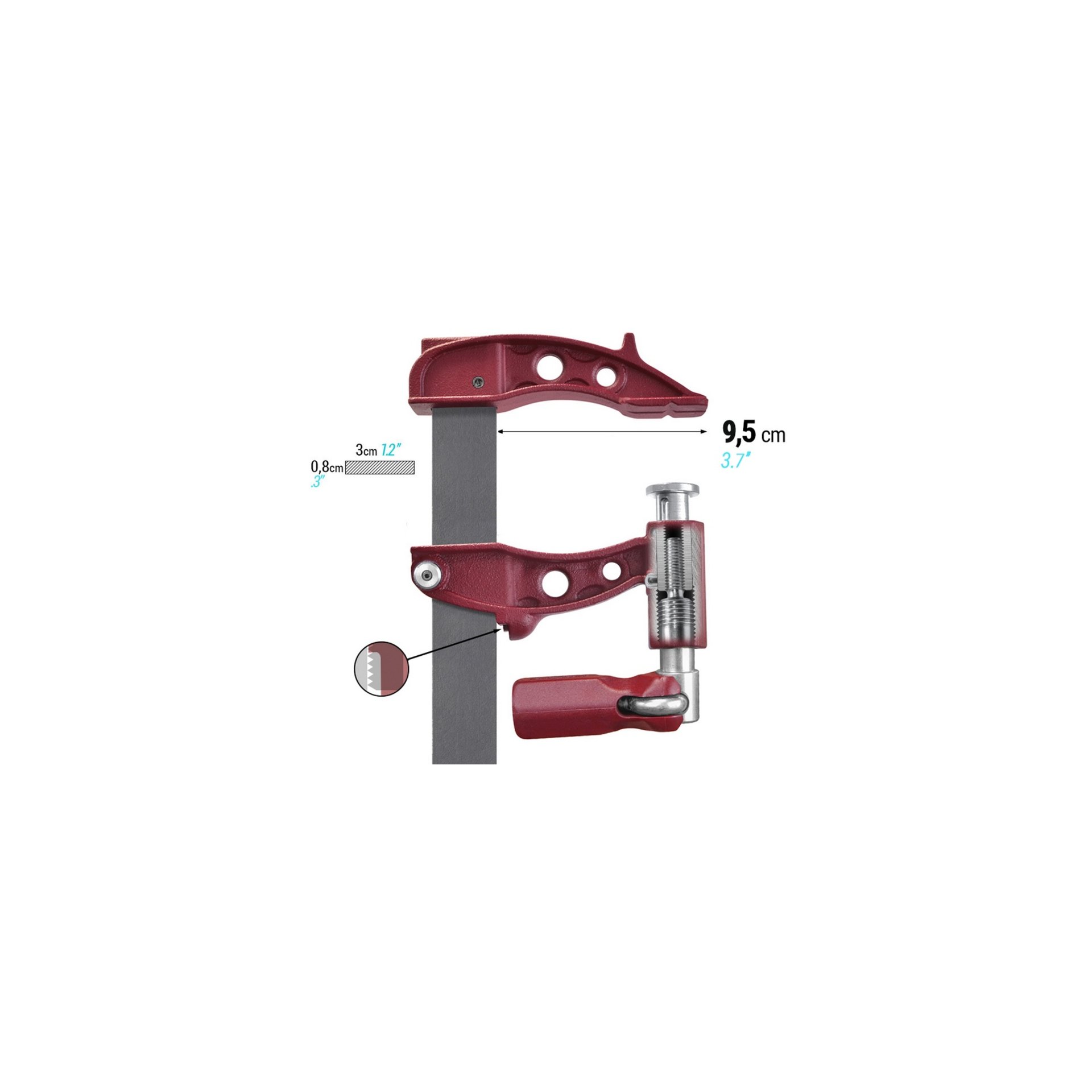 - Exceptionnelle puissance de serrage pour ce serre-joint à pompe (900 kg / 9000 newtons).