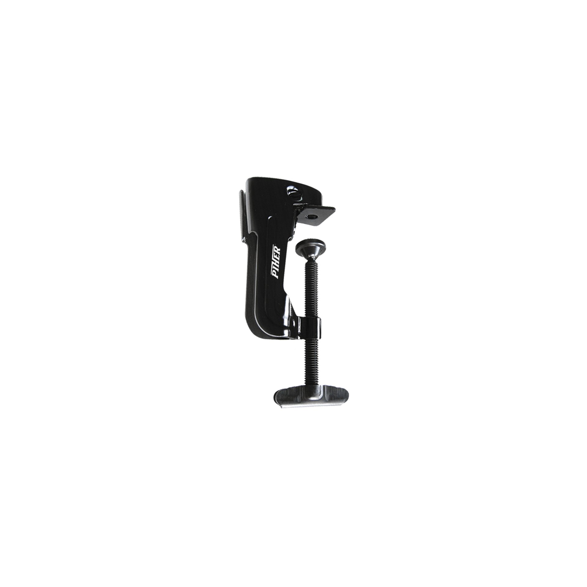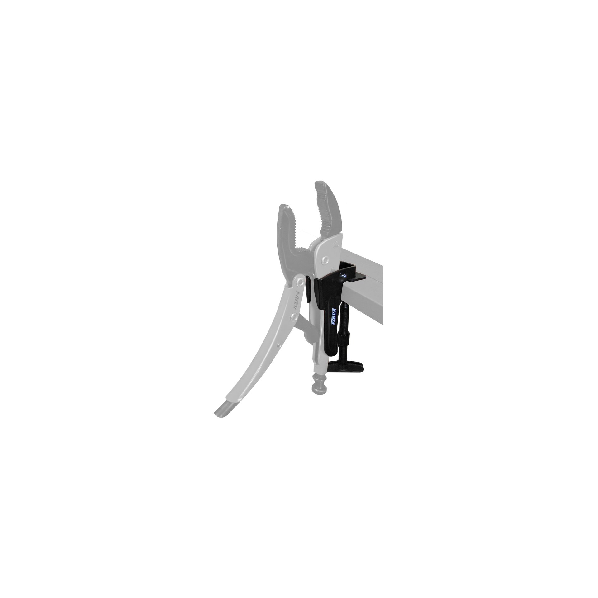 Ce support à pince étau se fixe au bord d’un établi ou d’une table et permet de convertir une pince étau en étau d’établi.