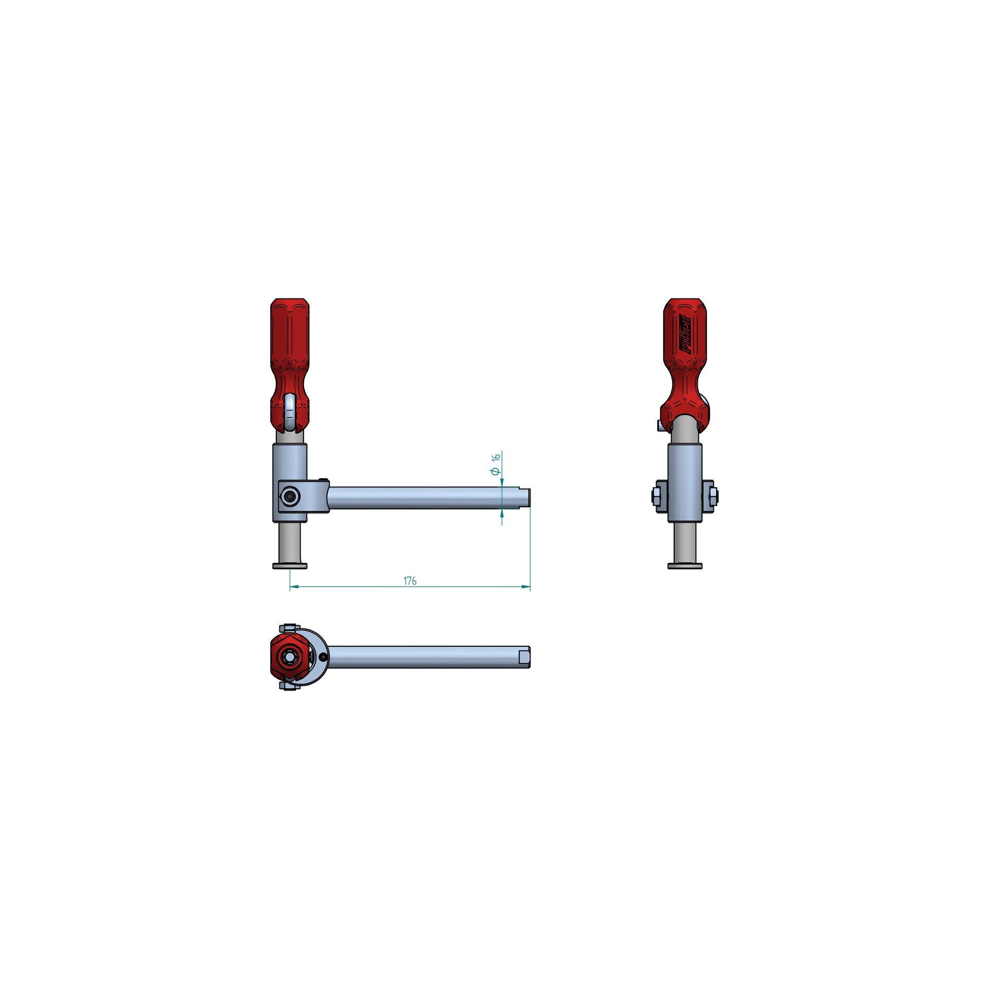 Equipé de la poignée multiposition brevetée PIHER assurant un confort et une puissance de serrage sans équivalent.