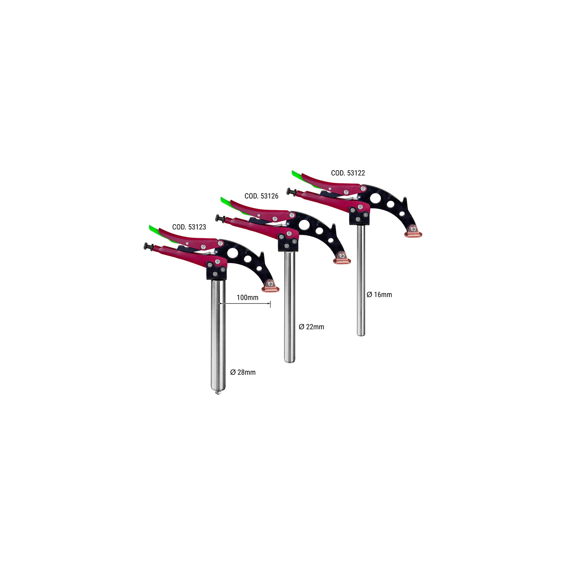 3 Ø de trous de table disponibles: 16 – 22 – 28 mm