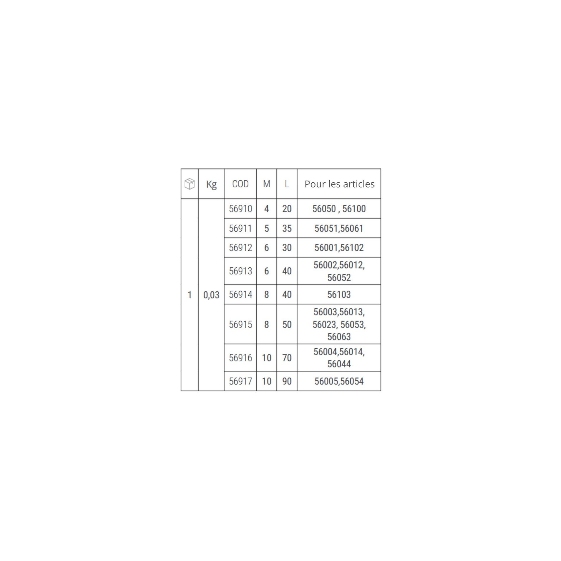 | 56913 | 8422473569136 | M6X40 | 1 | 4,26 € HT | En stock | ||