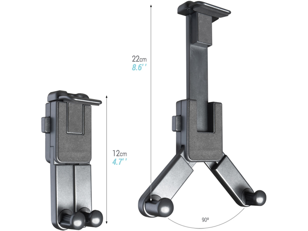 Le support universel pour tablette s'adapte sur le pied multidirectionnel PIHER référence 34061 (voir photo) équipé d'une pince de fixation réalisé en poylamide chargé de fibre de verre , grande puissance de serrage 75 kg (ouverture maxi de la pince 50 mm) pouvant s'utiliser sur un support plane ou sur un tube de diamètre 18 à 48 mm.