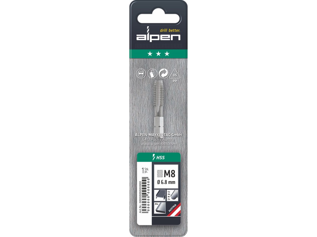 Pour filetages traversants, convient pour les aciers alliés et non alliés jusqu'à environ 850 N/mm², la fonte d'acier, la fonte malléable, le laiton, l'aluminium et le cuivre.