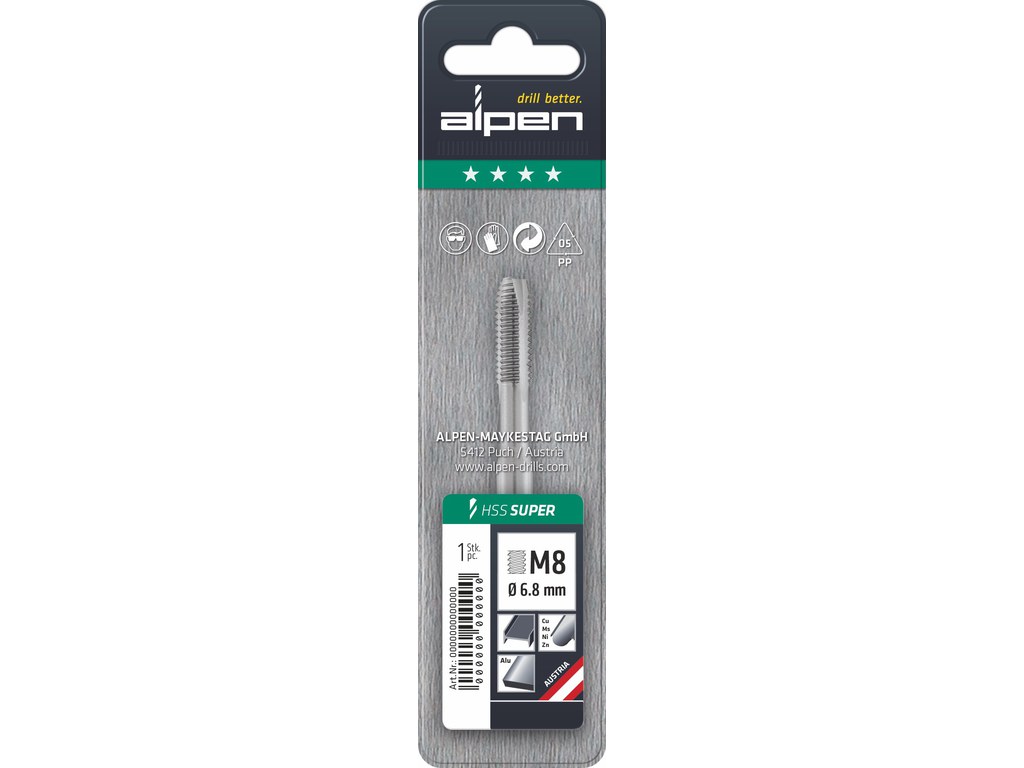 Taraud à fileter les machines avec coupe en bout pour filetages traversants, convient pour les aciers alliés et non alliés jusqu'à environ 850 N/mm², fonte malléable, fonte sphéroïdale, alliages de zinc, zinc moulé sous pression et laiton (à copeaux longs).