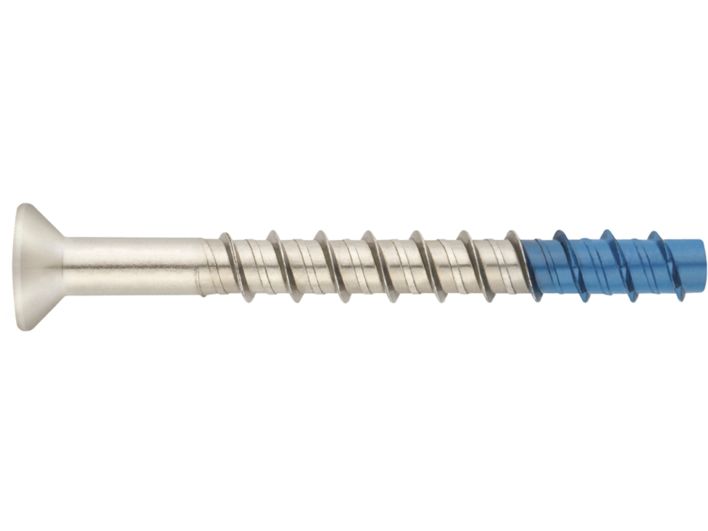 D'une part le corps de l'ancrage est fabriqué avec de l'acier inoxydable A4, ce qui lui attribue des caractéristiques anticorrosion, jusqu'à des niveaux de corrosion C5. La pointe de l'ancrage, en revanche, est fabriquée avec de l'acier au carbone trempé, plus dur et qui facilite l'installation et la fixation au matériau de base. Le processus de production innovant permet de souder les deux matériaux par friction.